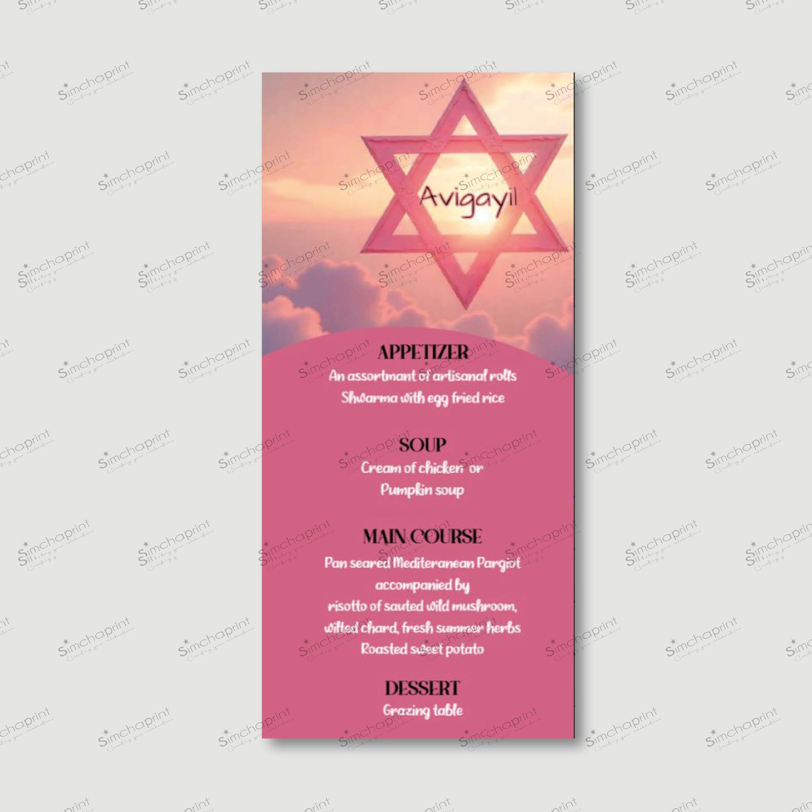 Be the first to review “Magen David Pink Menu Cards for Bat Mitzvah”