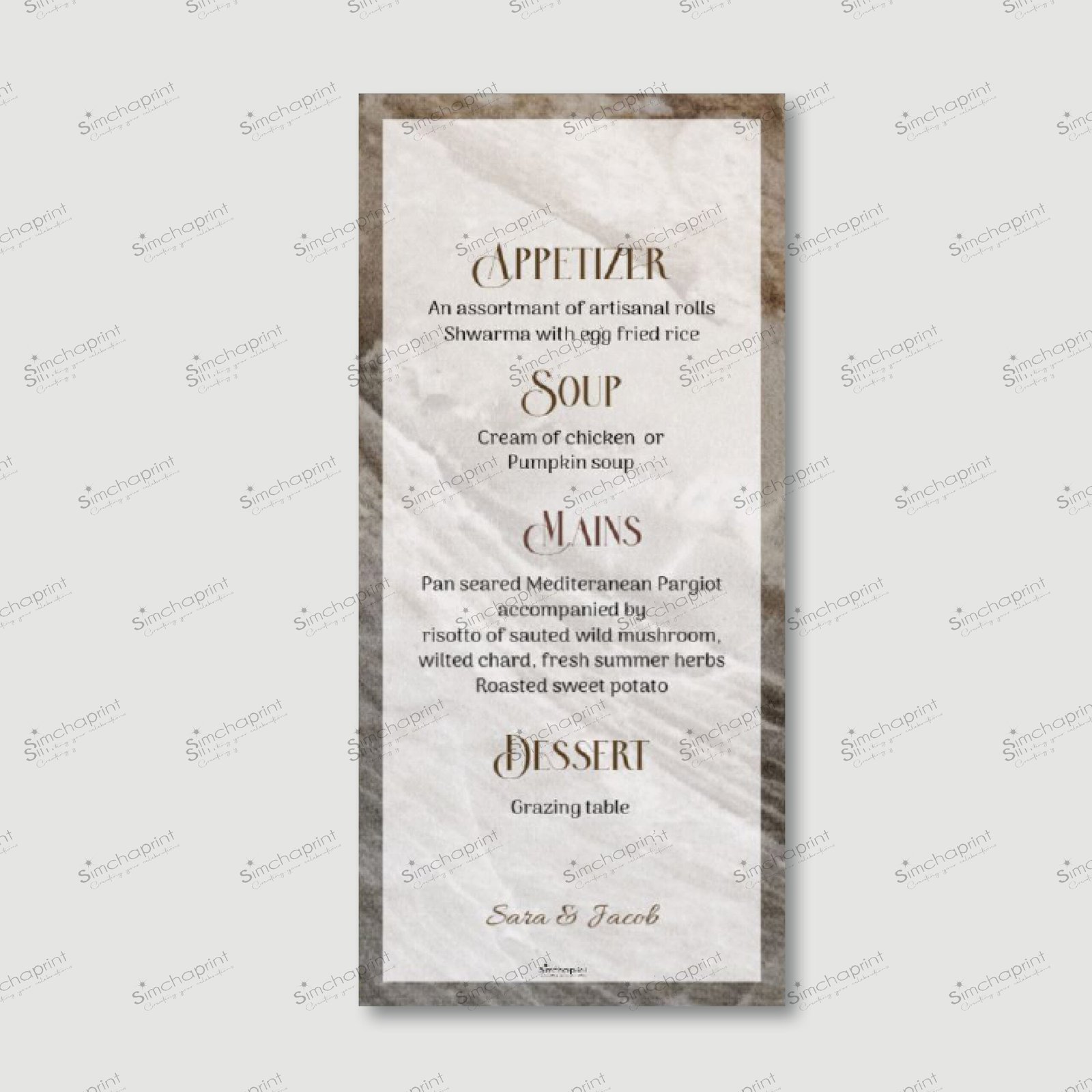 MOCHA MARBLE Menu Cards for Wedding/Sheva Brachot