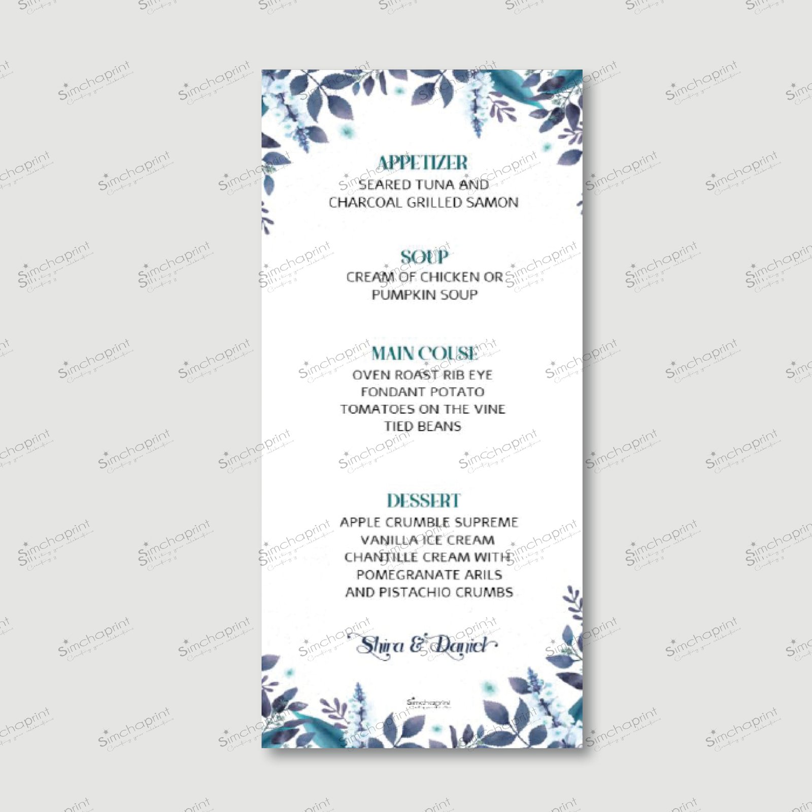 Be the first to review “SUMMER LEAVES Menu Card for Wedding/Sheva Brachot”
