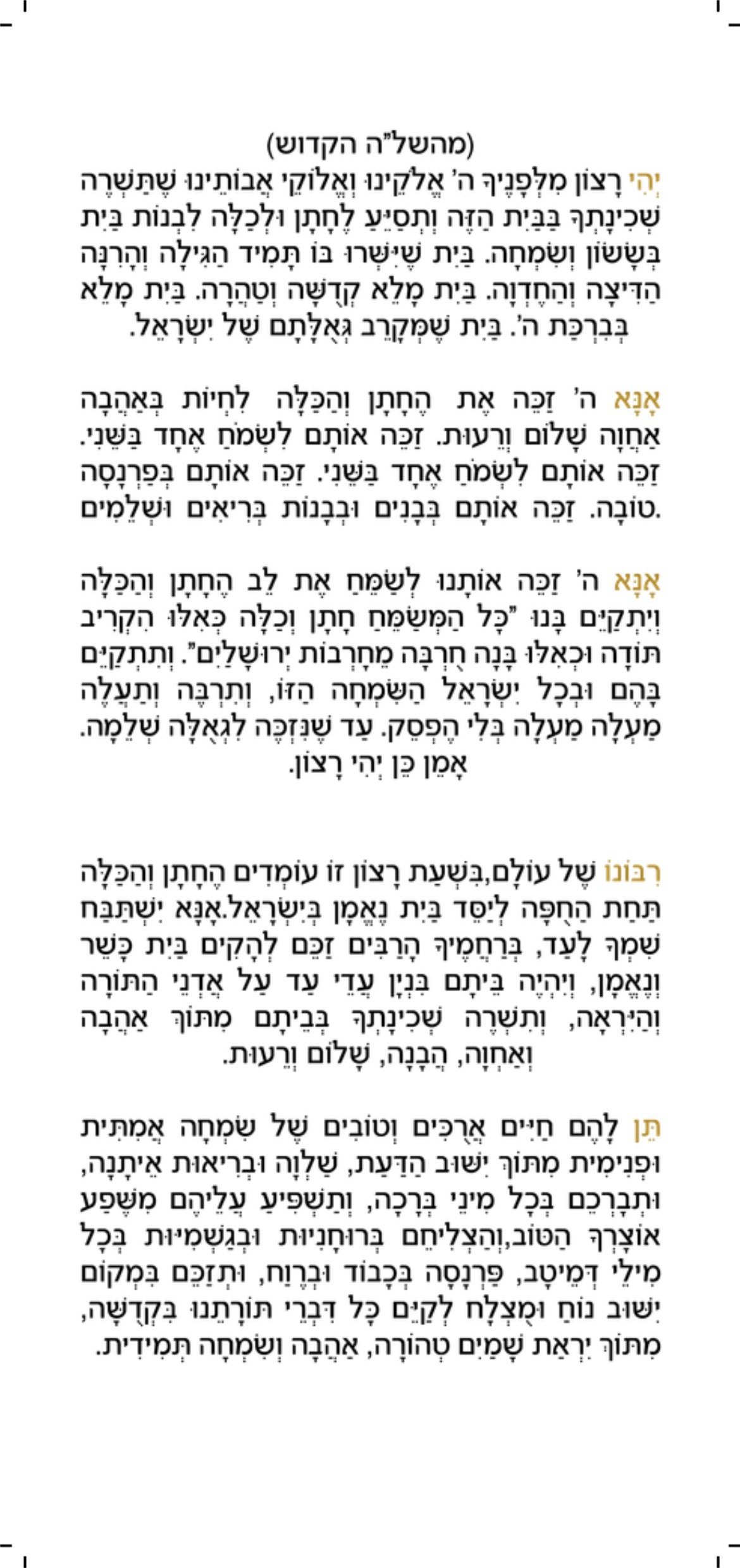 Make the Chuppah ceremony even more meaningful by providing your guests with personalized cards that feature relevant prayers and blessings. Let your guests actively participate in the holy moments by using this auspicious time in the best way. Simply add your custom text, names, or a special message, and these keepsake cards will serve as a beautiful reminder of a holy and unforgettable moment