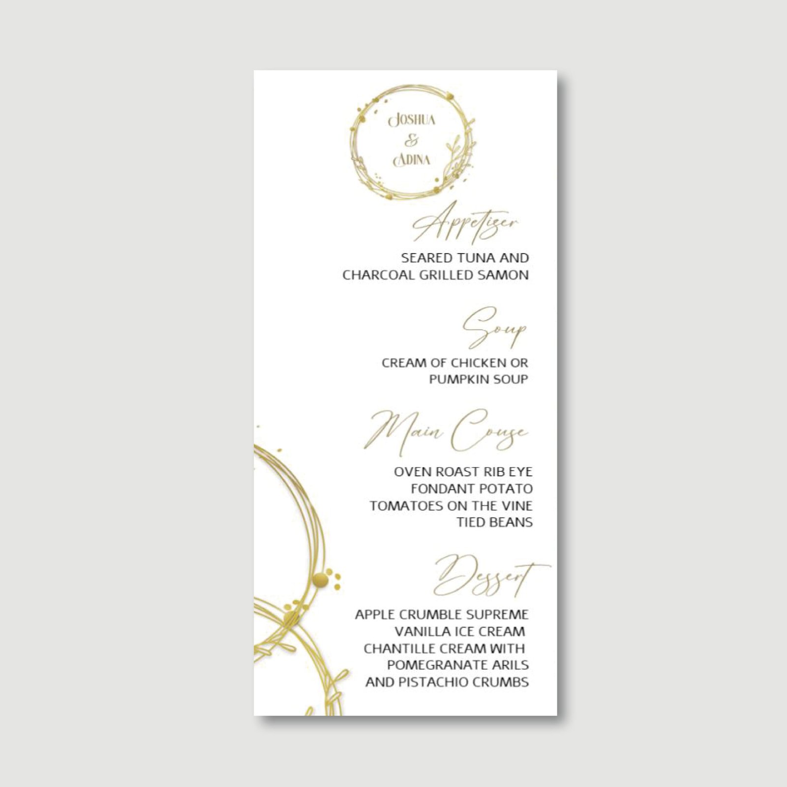 GOLD WREATH Menu Cards for Wedding/Sheva Brachot