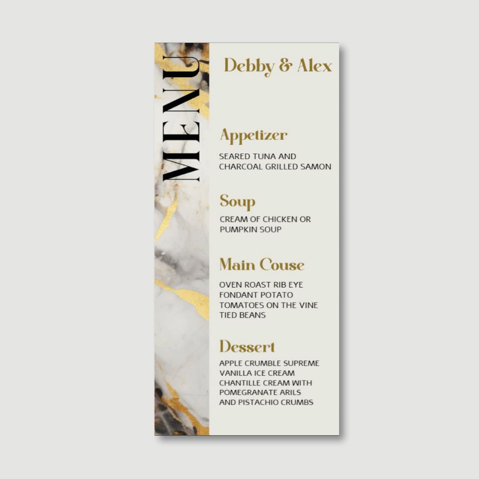 MARBLE GOLD Menu Cards for Wedding/Sheva Brachot