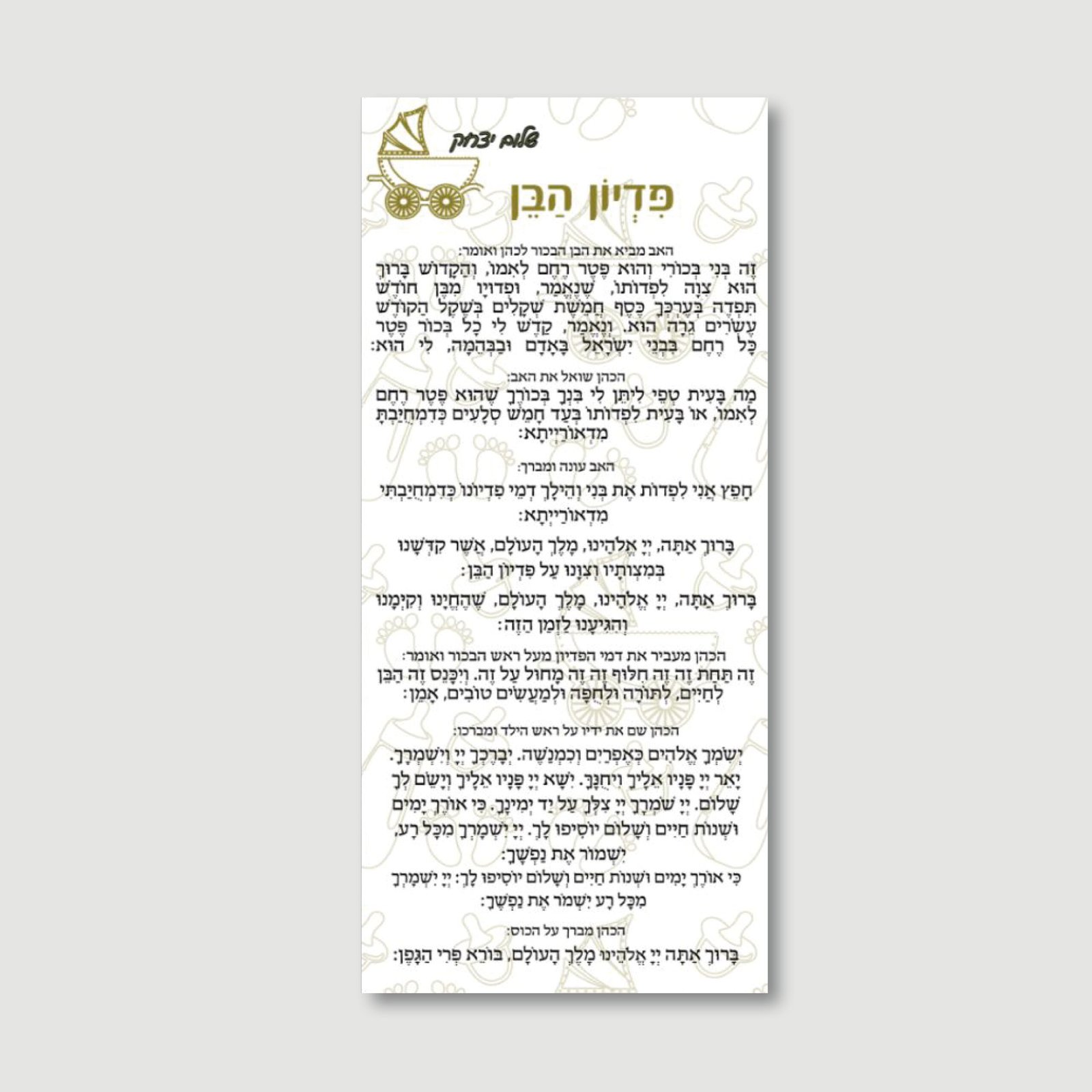 Honor a sacred milestone with a card as meaningful as the moment itself. Our Pidyon HaBen cards are designed to mark this ancient tradition with modern elegance. Whether you’re offering a keepsake for guests or including personalized blessings or prayers, each card is thoughtfully crafted and fully customizable. Choose from delicate, timeless designs and add your baby’s name, the date of the ceremony, or a heartfelt message. A beautiful way to elevate your celebration—and share its significance—with those who matter most.
