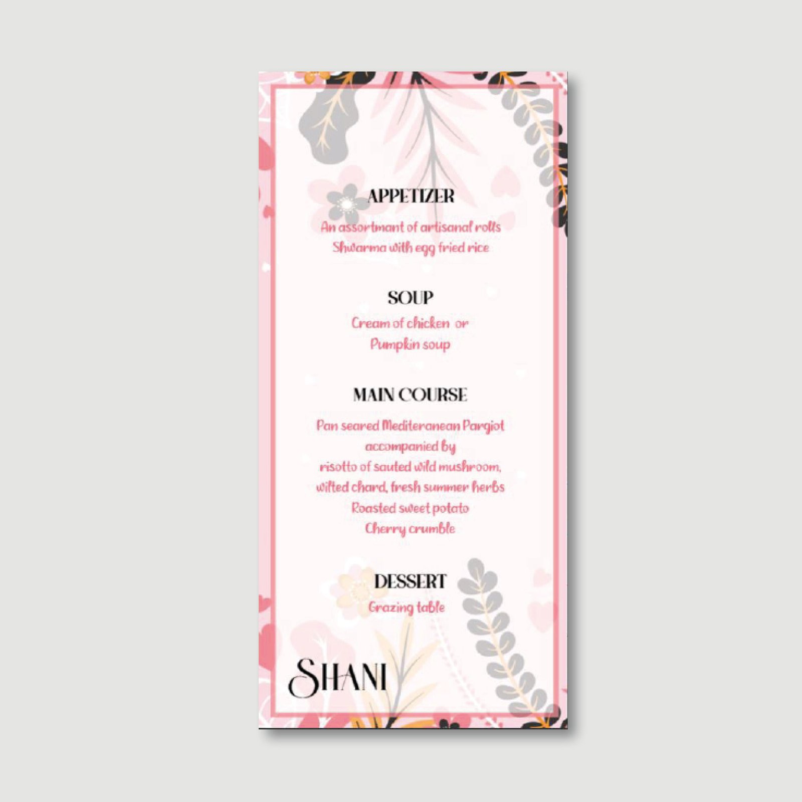 Our elegant menu cards add a refined touch to each table setting, while offering guests a preview of what’s to come. Choose from a thoughtfully designed collection of templates—classic, modern, or somewhere in between—and personalize with your event details, courses, or a short message. Whether it’s a wedding, bar/bat mitzvah, or special dinner, our printed menus help set the scene with understated sophistication. No graphic designer required—just your personal touch.