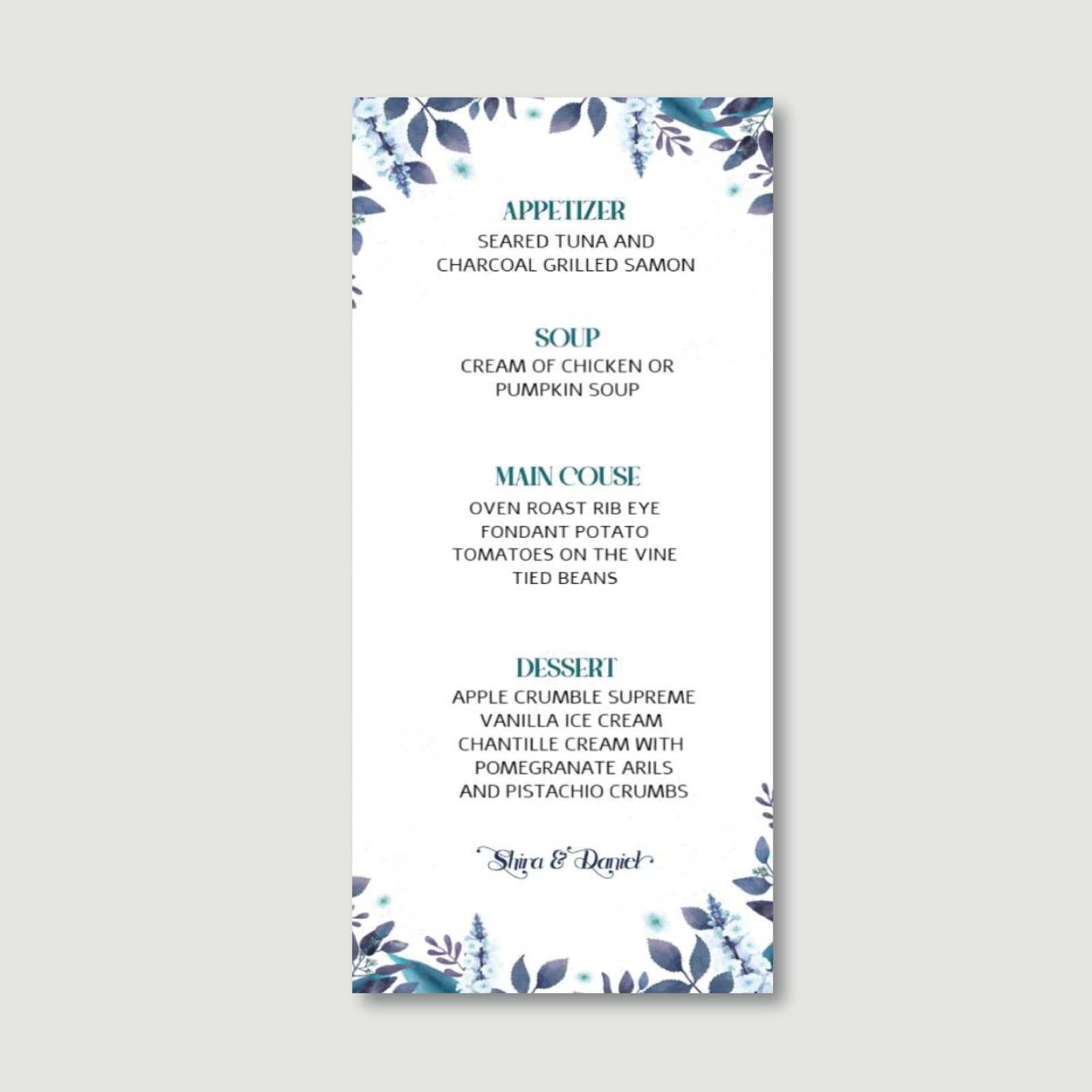 SUMMER LEAVES Menu Card for Wedding/Sheva Brachot